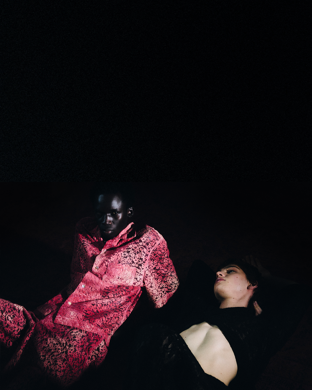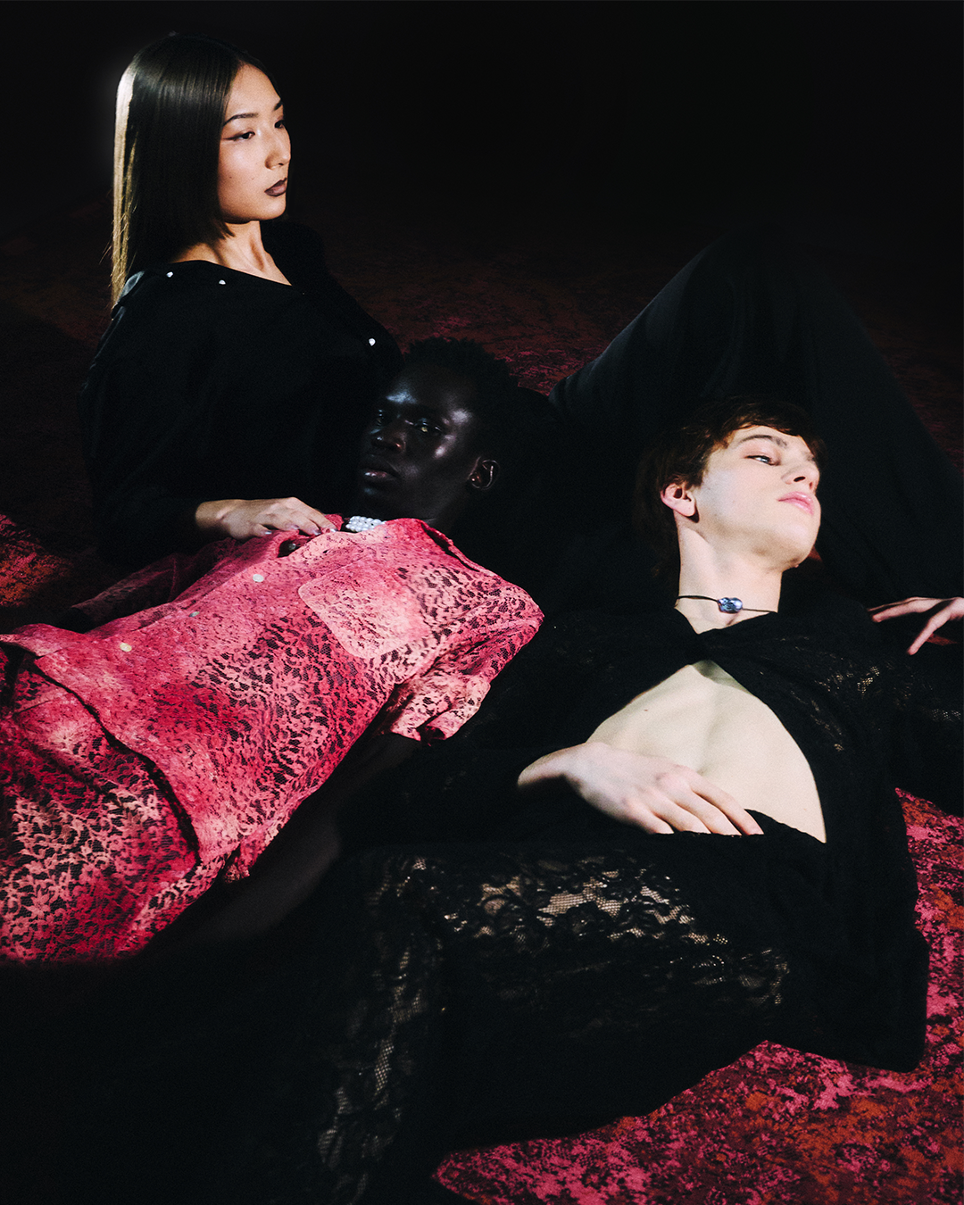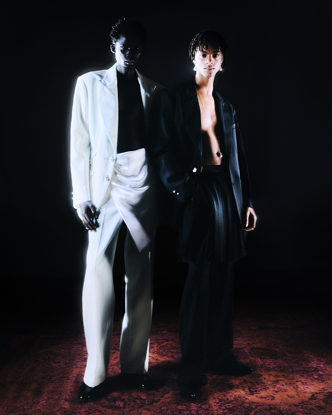 The Antoine Horlaville debut collection comes in the form of a creative destruction. A bonfire gathering humans around the uncomfortable yet joyful process of letting go of the old habits to reset, discarding gender norms to embrace a chosen identity, turning fears and emotional baggage into fuel, setting free from brain fog to focus your vision, burning the bridges that are not leading to yourself, setting a stop and a beginning. Ahead of that, the story often starts in a room full of friends, the fire is just a red carpet, and the clothes are just sketches.