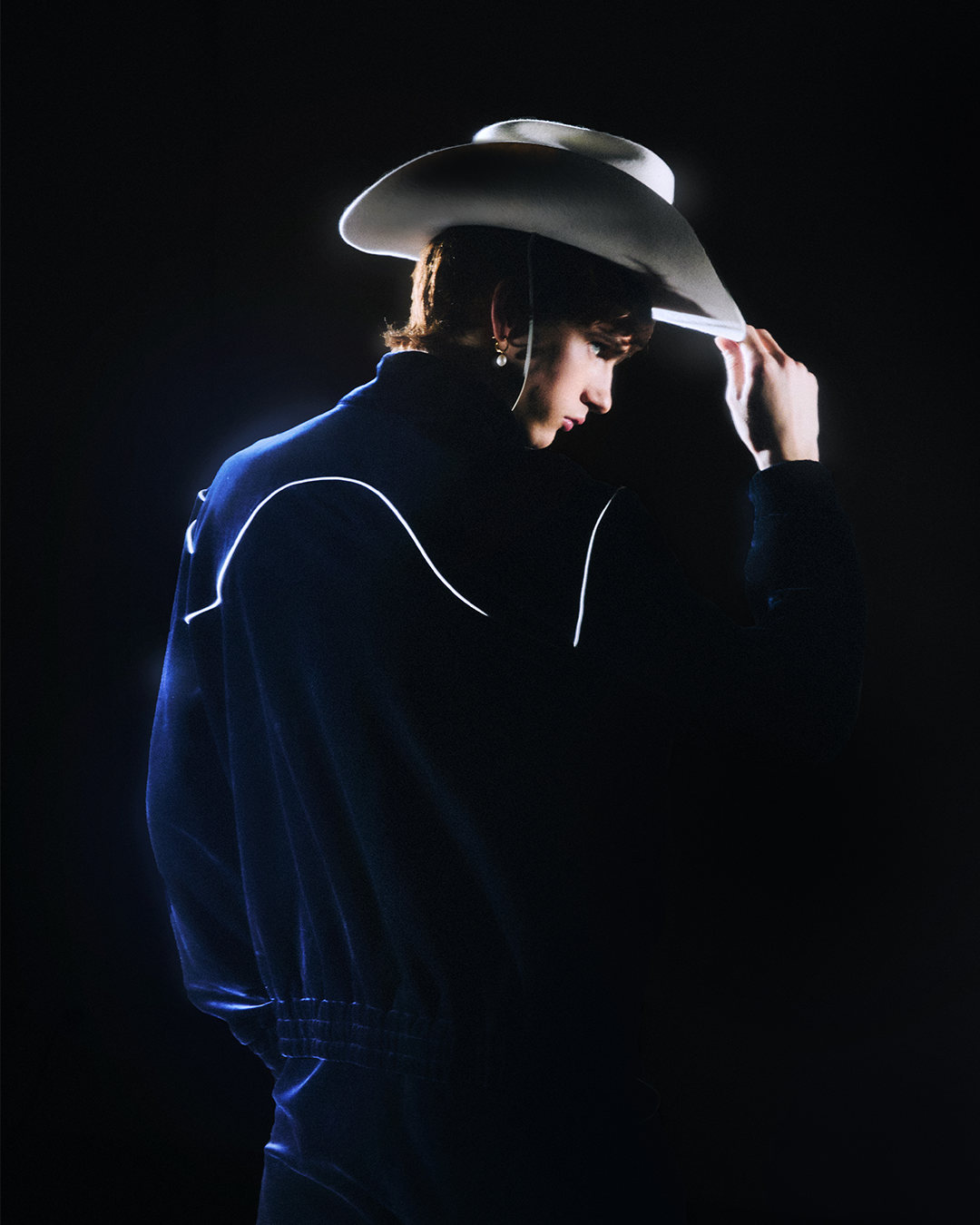 The summer fantasy goes on with cowboy hats and western details, completing the picture of a bonfire on the beach. The spirit of freedom is personified by the magnetic figure of the cowboy. A cinematic silhouette imbued with mystery for choosing his own destiny in the wilderness, that also stands as an ambiguous symbol at the pinnacle of conservatism and queer culture.